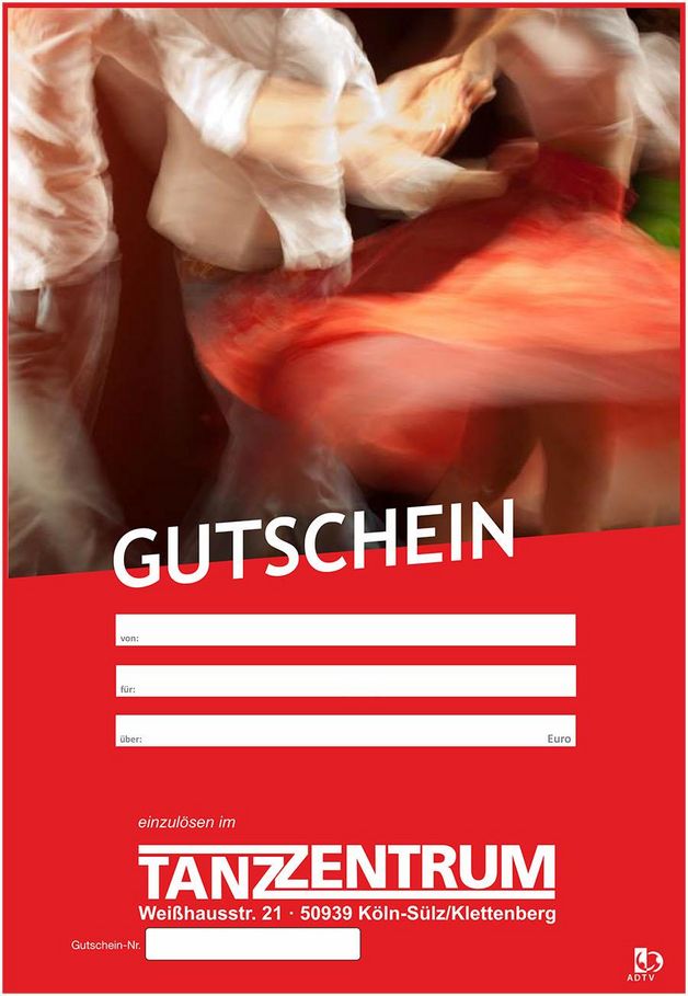Der Gutschein ist natürlich 3 Jahre lang gültig und kann für all‘ unsere Tanzkurse, unabhängig vom Tanz-Bereich, eingelöst werden.